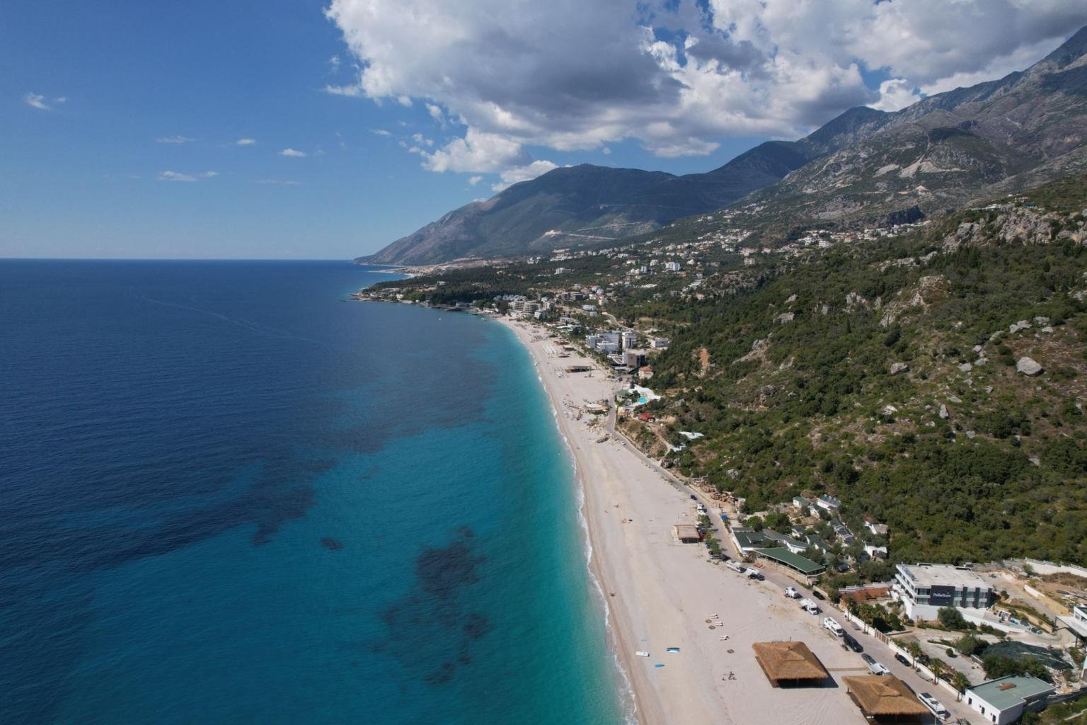 The Albanian Riviera stretches along the Ionian Sea, offering crystal-clear water, dramatic mountain backdrops, and beach towns that still feel local.